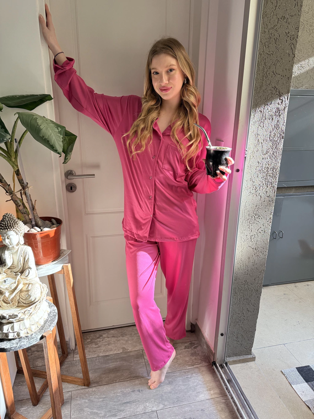 Los pijamas estan elaborados de modal con algodon premium, remera manga corta y pantalon largo