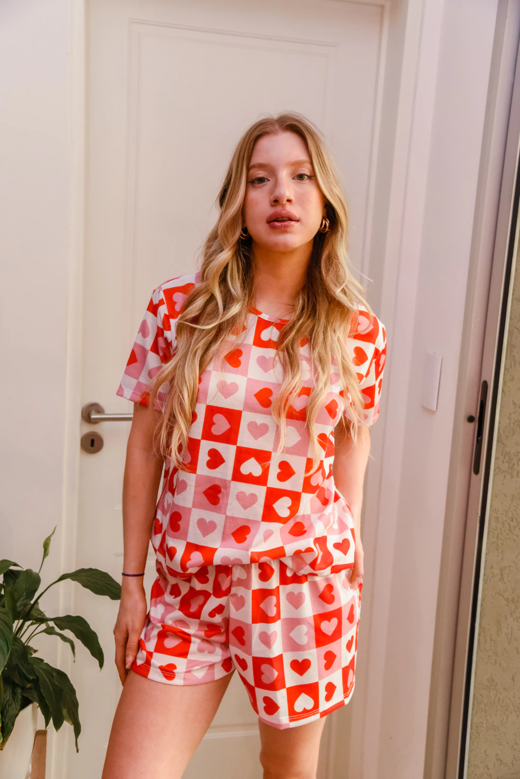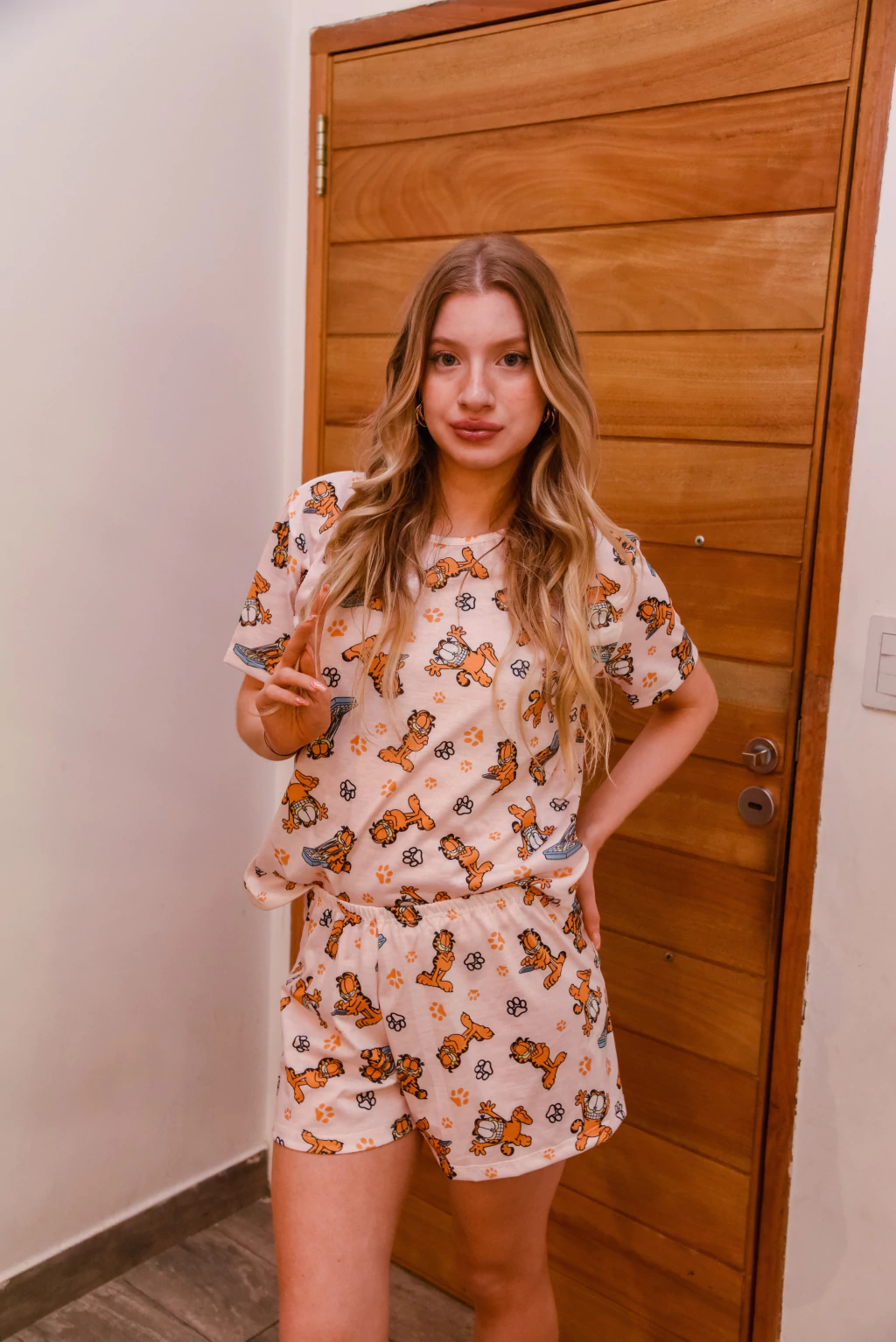 Los pijamas estan elaborados con tela de modal con algodon, remera manga corta y short
